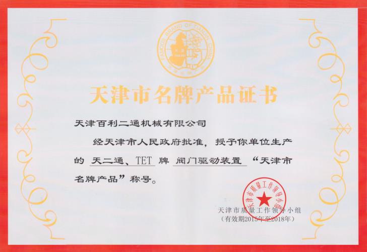 閥門驅(qū)動(dòng)裝置名牌產(chǎn)品證書