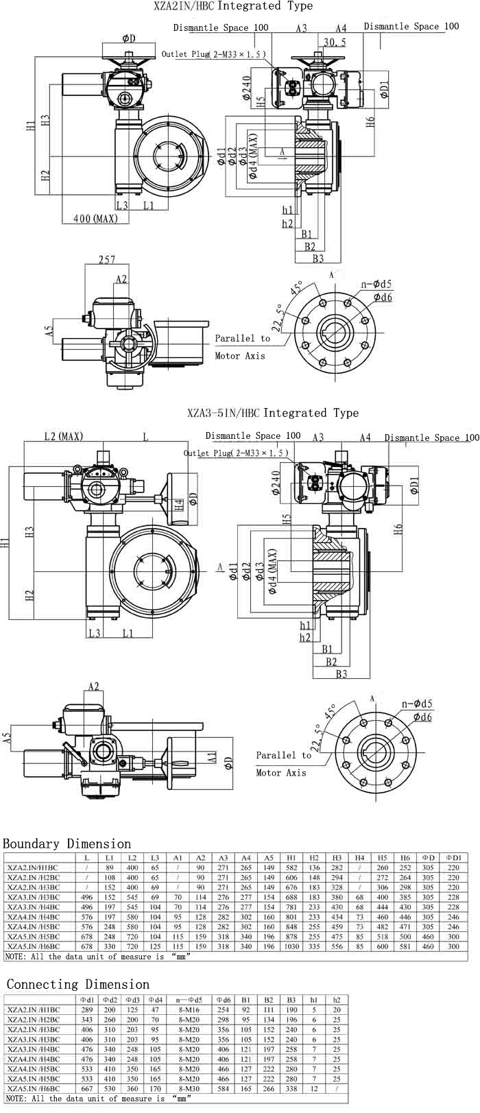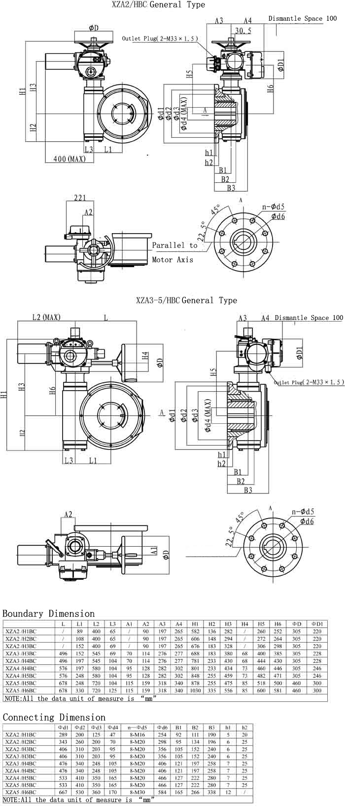 XZA/HBC series ,the combination of XZA series multi-turn electric actuators and HBC worm speed reducer , was used to control ball valve ,butterfly valve and other part-turn valve actuators.This series actuators have features as firm constructure, multiple standard,large torque rang,stable output and self-locking ability.In order to gear into valve rod,HBC has a involute serration joint.It is easy to test and adjust.