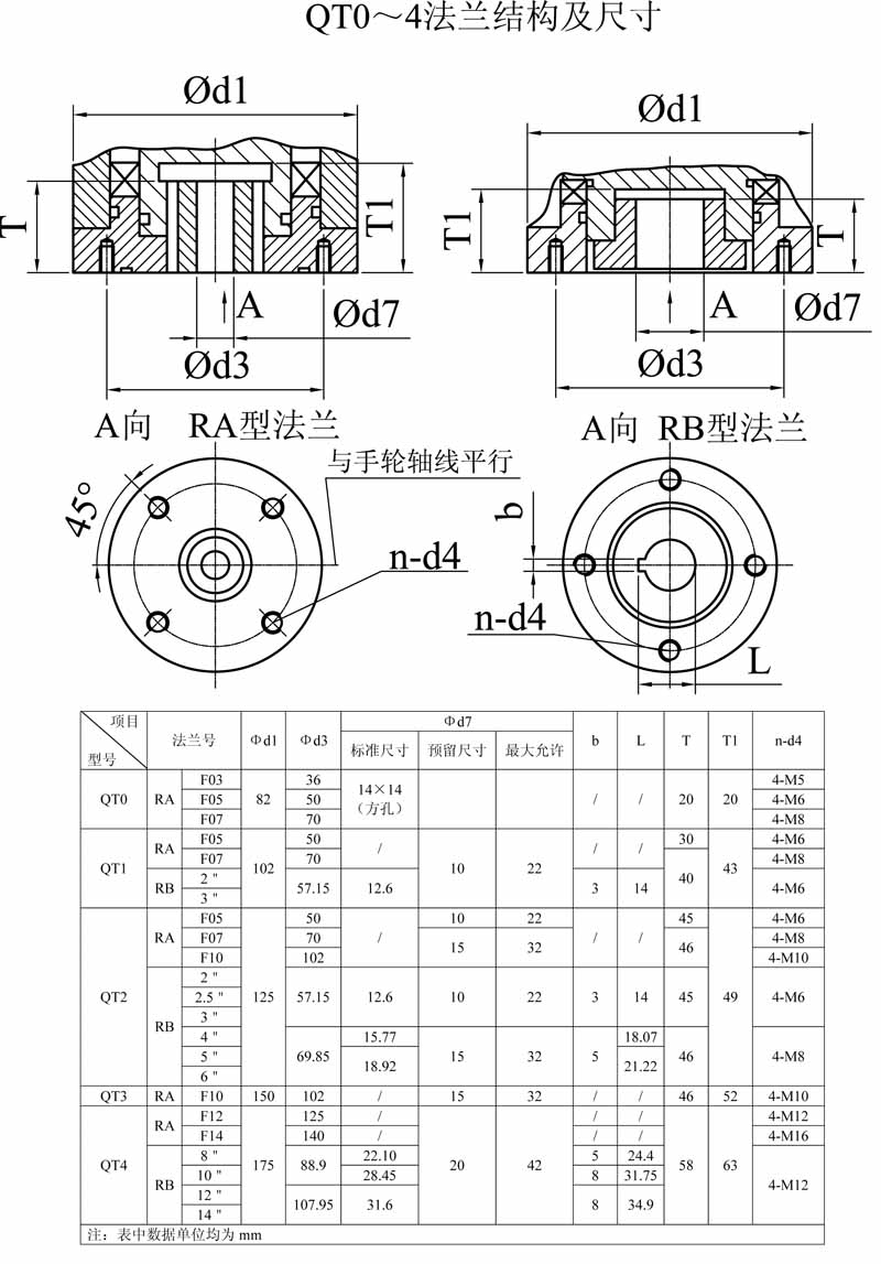 QT0-4法蘭結構及連接尺寸