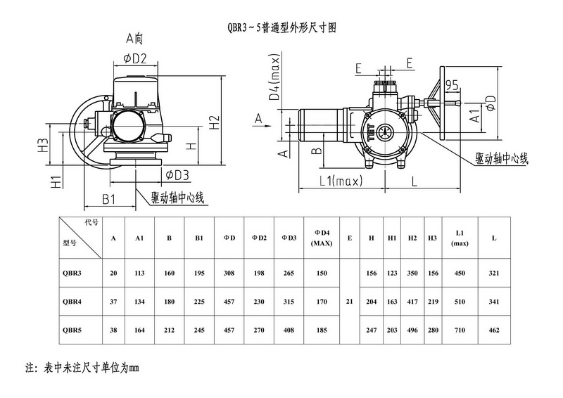 QBR3~QBR5是我公司研制的部分回轉閥門電動裝置,控制轉矩范圍:900N.m~12000N.m。該電動裝置可與球閥﹑蝶閥等閥瓣做90°回轉的閥門組合成電動閥門,其功能是控制閥門的啟閉。該電動裝置能夠進行單機或多機室內控制遠距離控制電動操作和現場手動或電動操作,可廣泛地應用在具有管道閥門的工業系統。該產品的防護等級為IP67,隔爆型產品(型號中有Ex)的隔爆等級 為dⅡBT4。